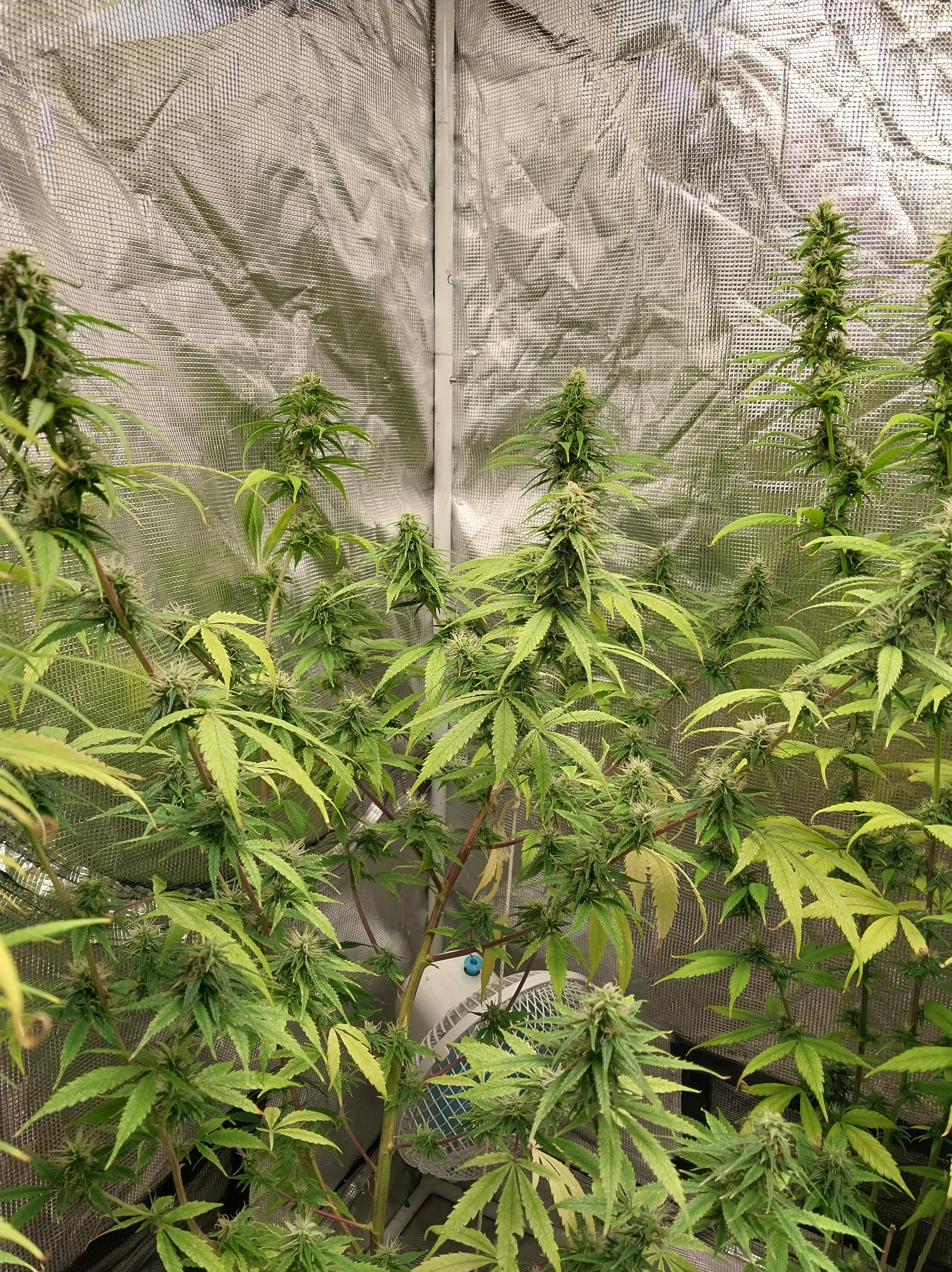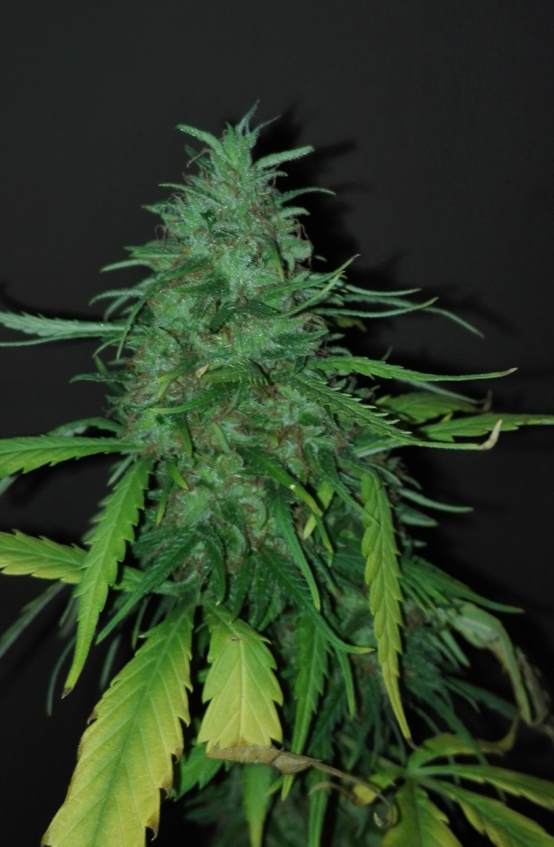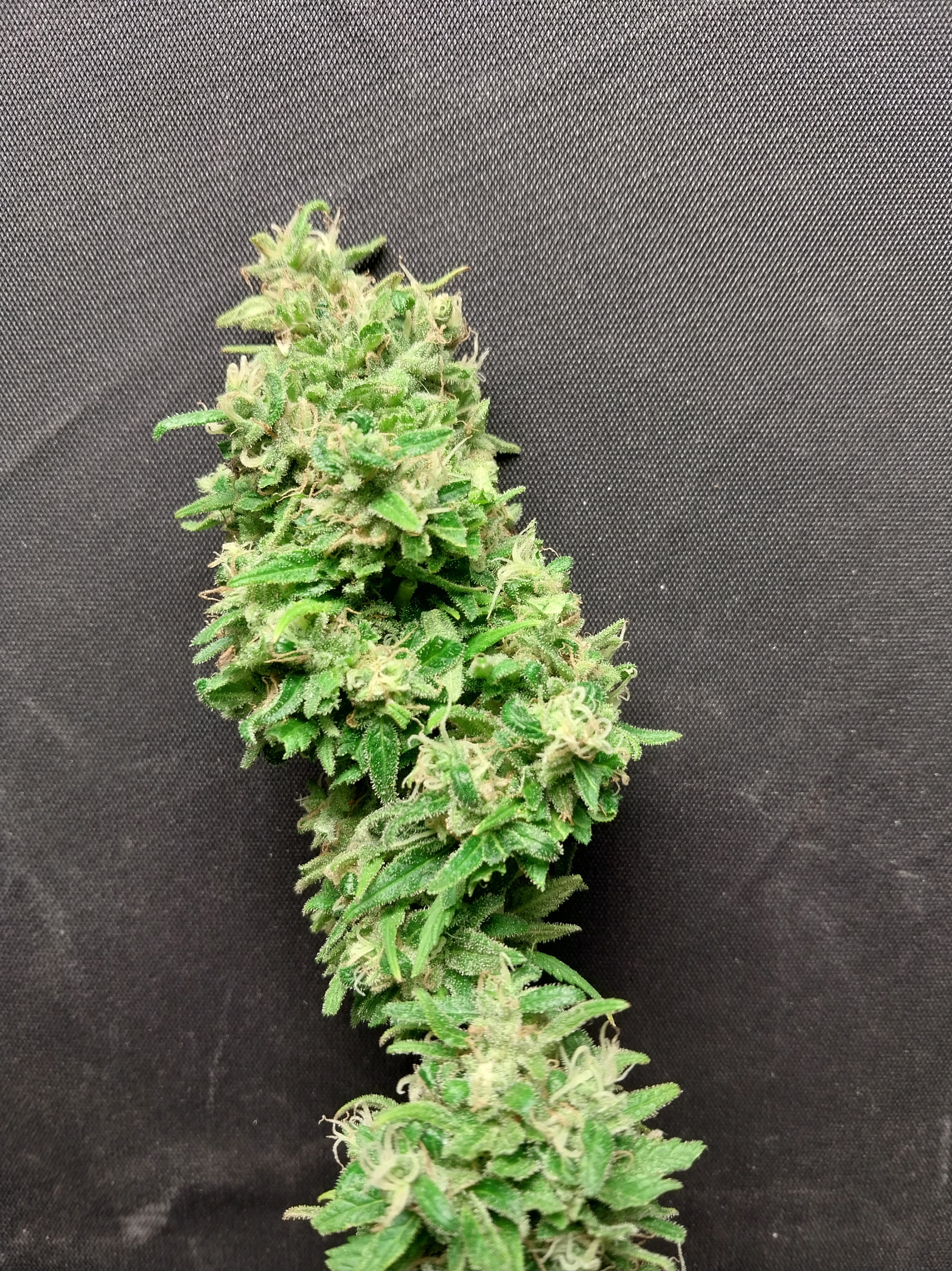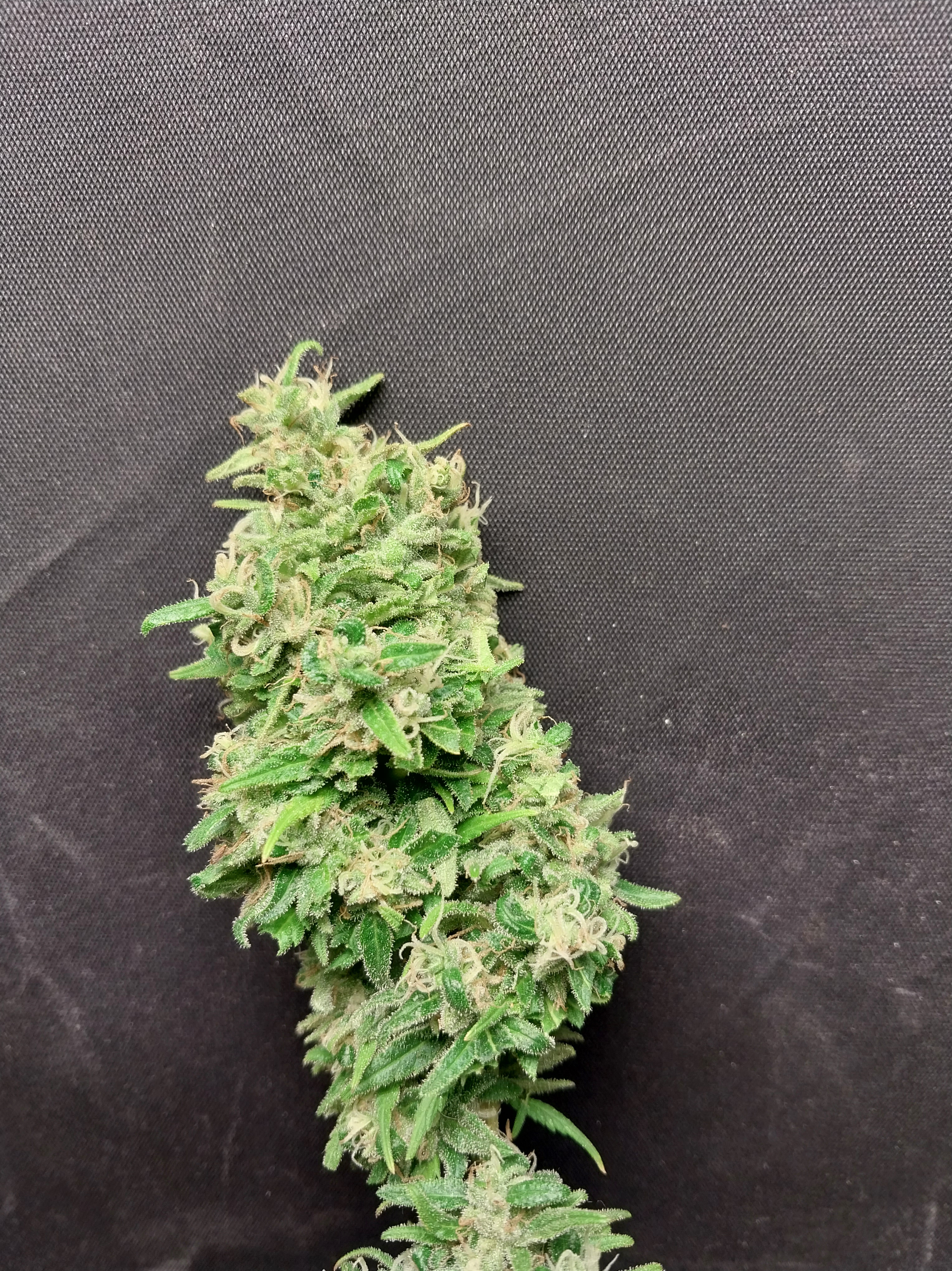 The colas are spear shaped and dense r than average sativa buds but are not rock hard. Cooler temperatures during flower will provide denser buds. They are sticky and glisten with resin. Aromatics include pine, mint and earth. She takes about 11 weeks outdoors and around 10 weeks indoors. This strain is tolerant of drought conditions and is able to be grown in winter in the Western Cape with temperatures around 14℃.